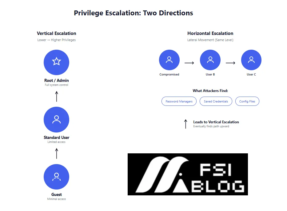 Security folks break privilege escalation into two categories, and understanding the difference matters because they require different defenses.